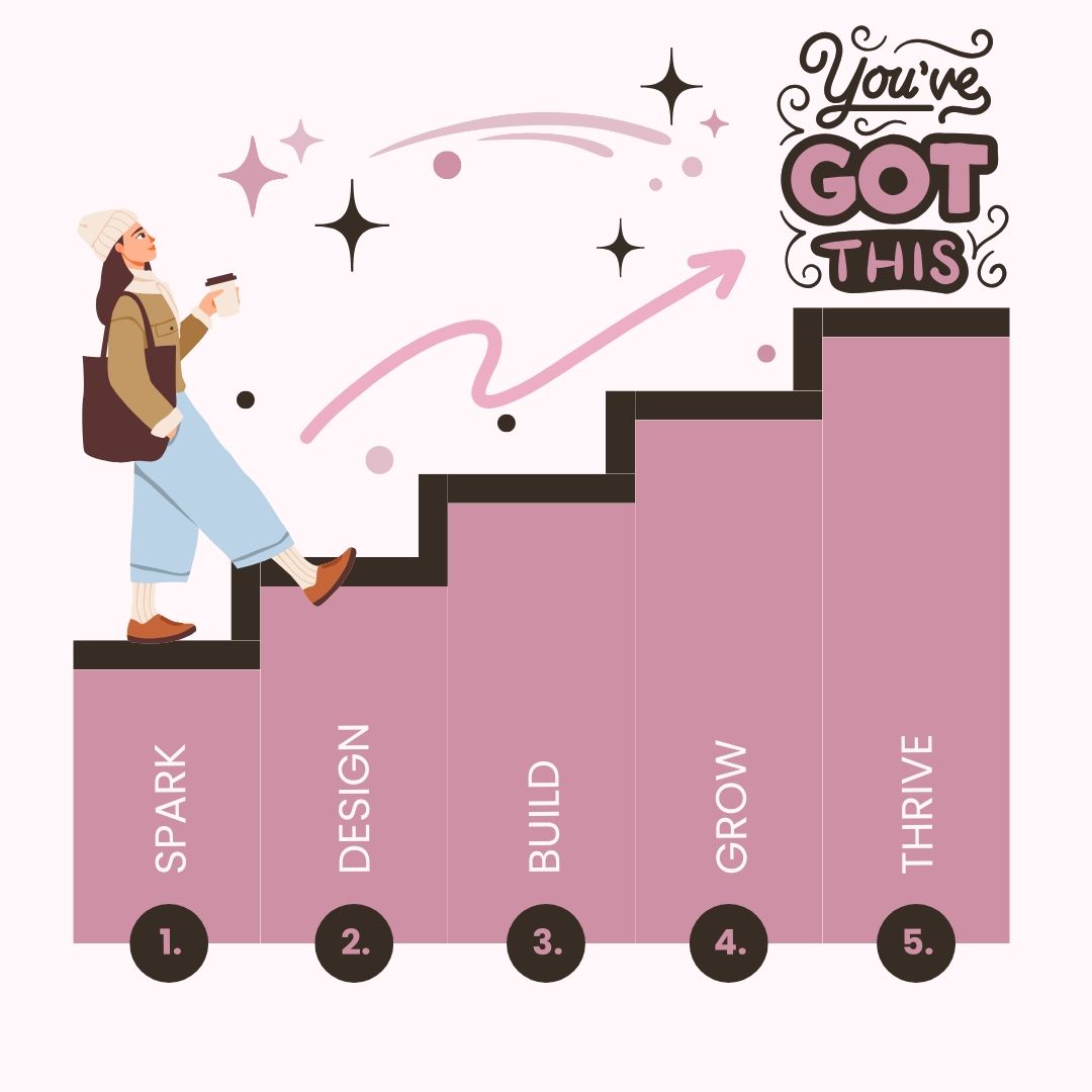 Spark is where you reconnect with your creativity and get clear on what you actually want to build. Instead of chasing every idea, this stage helps you identify directions that feel aligned, sustainable, and exciting.