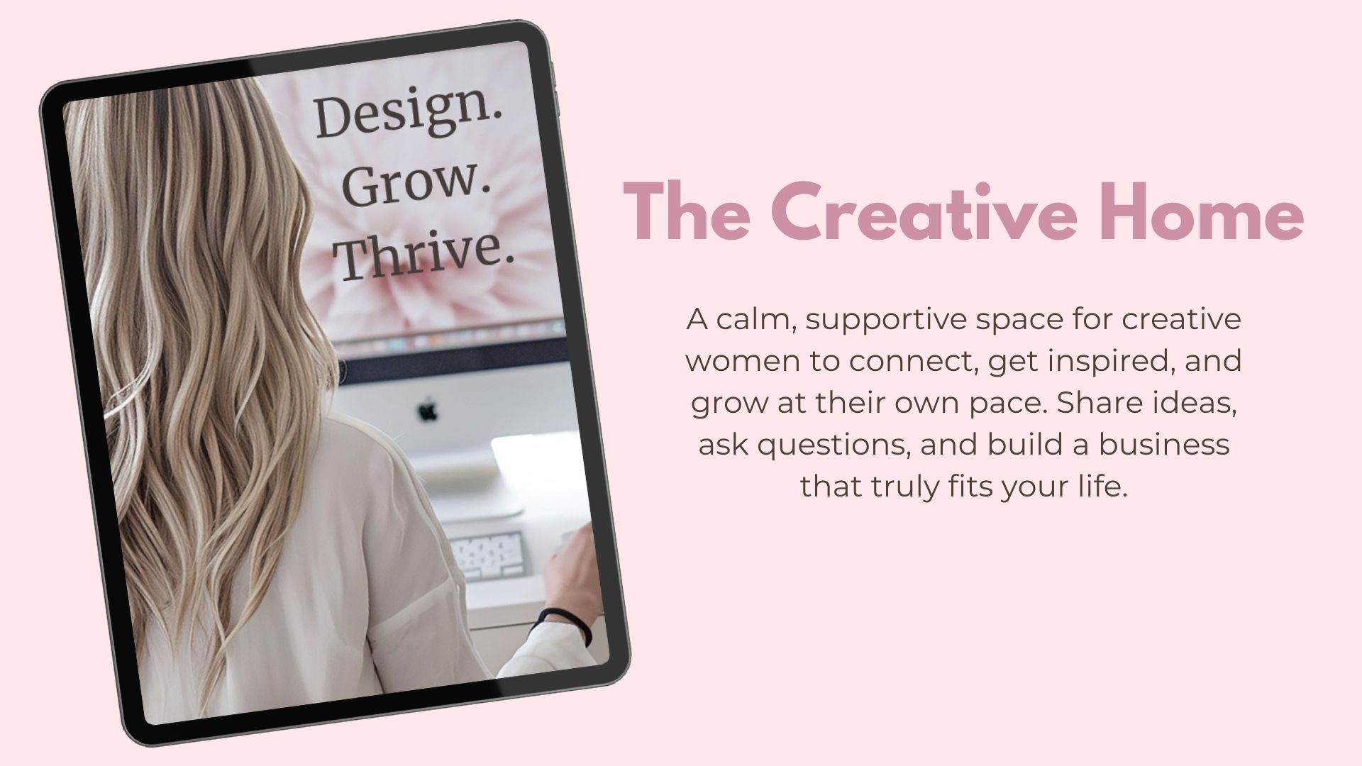 Stay inspired and supported month-to-month. Includes curated design bundles, gentle business prompts, access to the Thrive Path, and a supportive community - all designed to help you grow at your own pace.